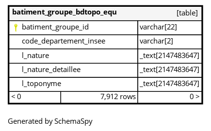 | batiment_groupe_bdtopo_equ__dbt_tmp_pkey1 | Primary key | Asc | batiment_groupe_id |