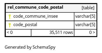 | rel_commune_code_postal__dbt_tmp_pkey | Primary key | Asc/Asc | code_commune_insee + code_postal |